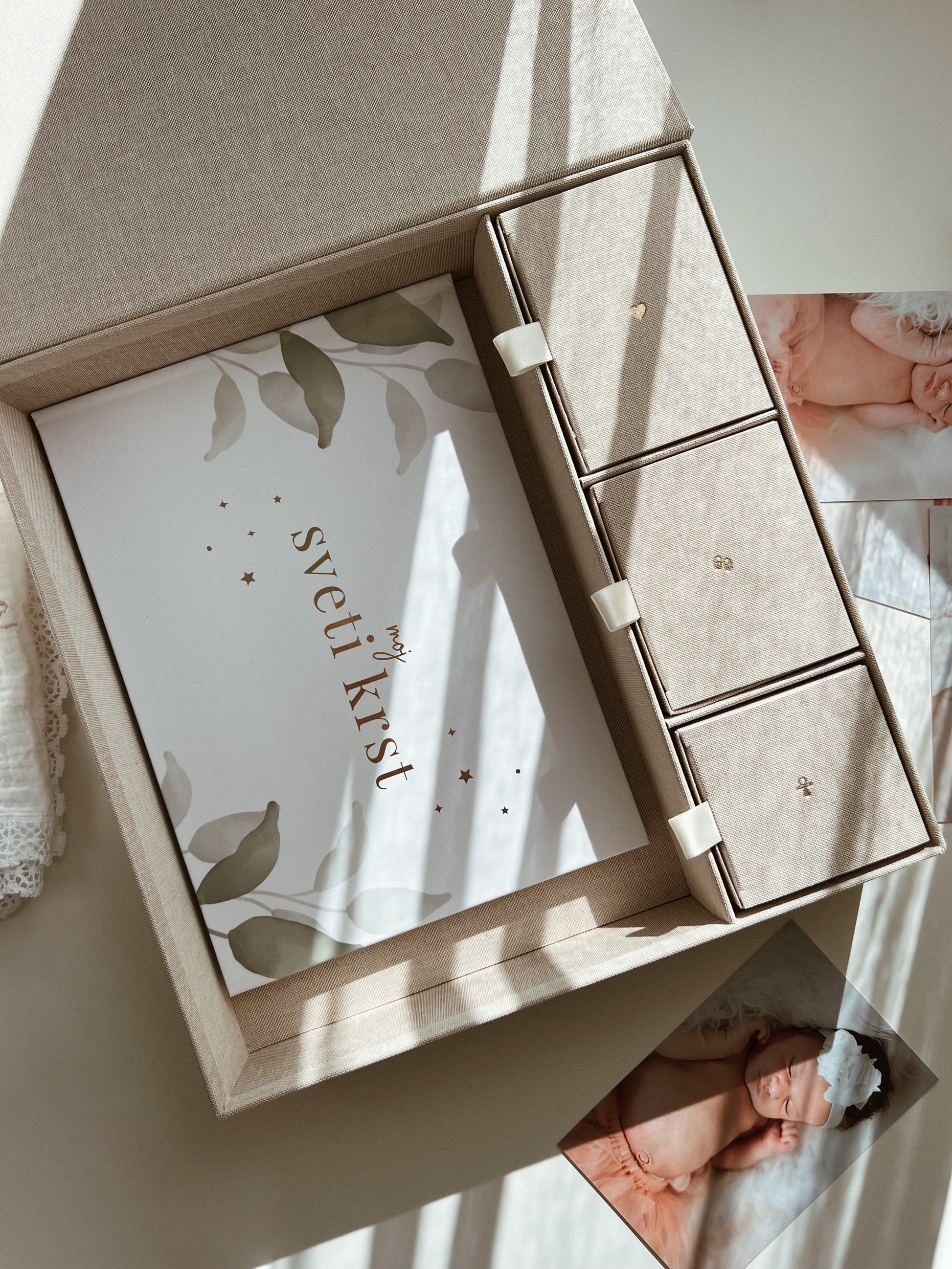 V paketu: Album Moj sveti krst in čudovita darilna škatla, v kateri je album pakiran.