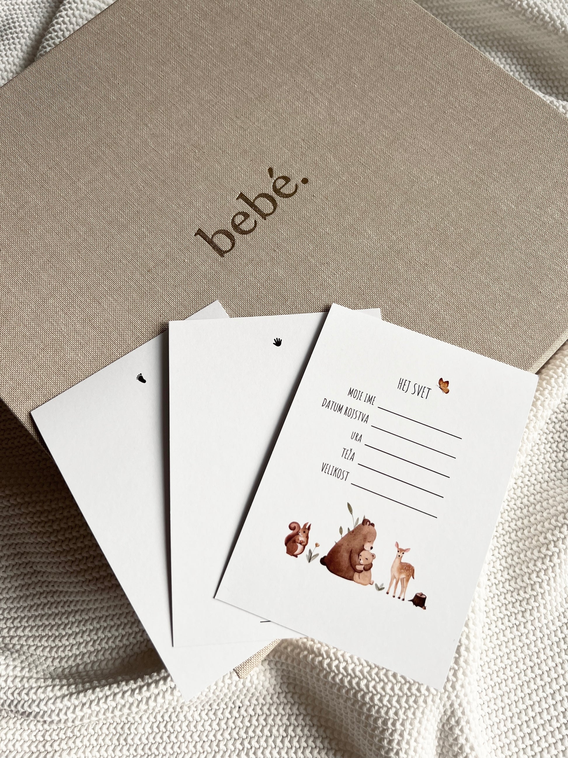 Z vključenimi brezplačnimi karticami za odtis nogic in rokic ter zapis prvih rojstnih podatkov, boste imeli vse, kar potrebujete, da ustvarite še bolj osebno in edinstveno spominsko škatlo za vašega dojenčka.